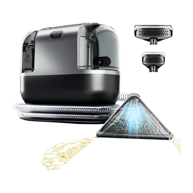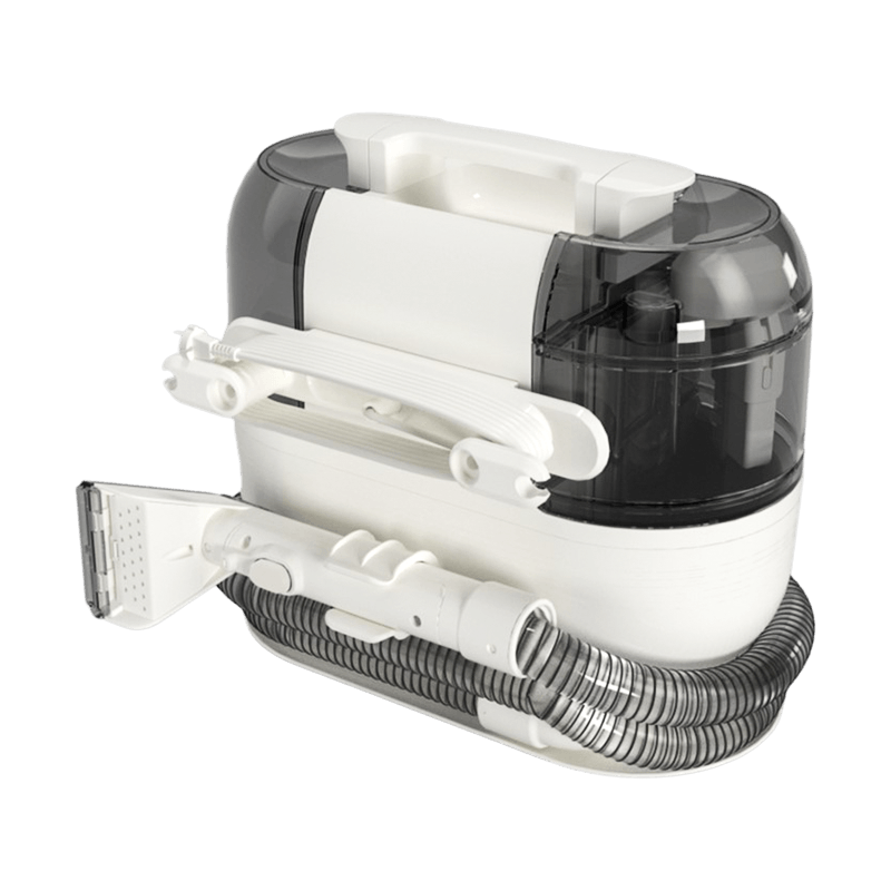 The DY-503AC portable cleaner, with a classic style, integrates water spray, scrubbing, and sewage suction. It has a 1250ml clean water tank and a 750ml dirty water tank, 15kPa suction, 80dB noise, a 1.8m hose, and a 4m power cord. Weighing 3.28kg, it features live water circulation cleaning, low-frequency operation for noise reduction, and easy storage. Equipped with standard, wide cleaning, and self-cleaning brushes, it meets diverse cleaning needs.